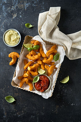 Außen knusprig in einer goldbraunen Laugenpanade, innen gefüllt mit cremigem, herzhaftem Käse nach Obazda-Art, verbinden die Alm Bites authentischen Biergarten-Charakter mit moderner Snackkultur. Sie eignen sich ideal als herzhafter Snack zum Bier oder als vielseitige Beilage, zum Beispiel zu Burger